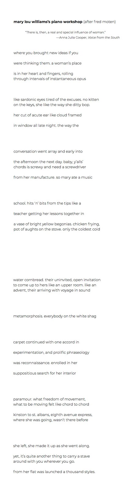 “Mary Lou Williams’ Piano Workshop” Poem by Makalani Bandele