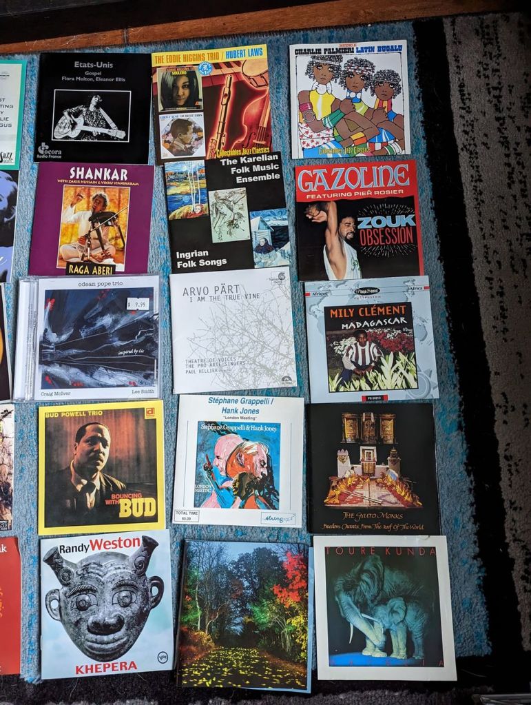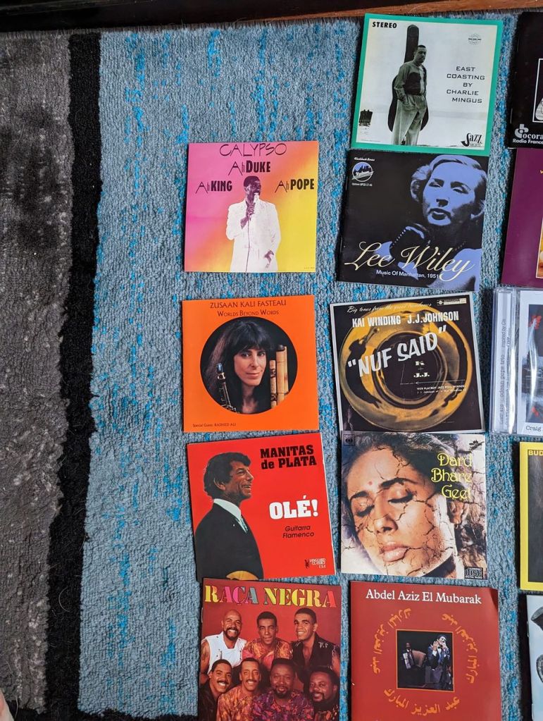 Well, only a 2 mile walk each way, but the songs journeyed around the entire globe. There were a few trends the Pipa, Afro Pop, cultural fusions, spirituality and some classic Jazz recordings but mostly this is all over the place. No real home runs or stinkers, though I did mistakenly replace Mingus “East Coasting” which I thought was lost, but is happily sitting in the Mingus area of my collection. Hope you enjoyed the vast playlist.
